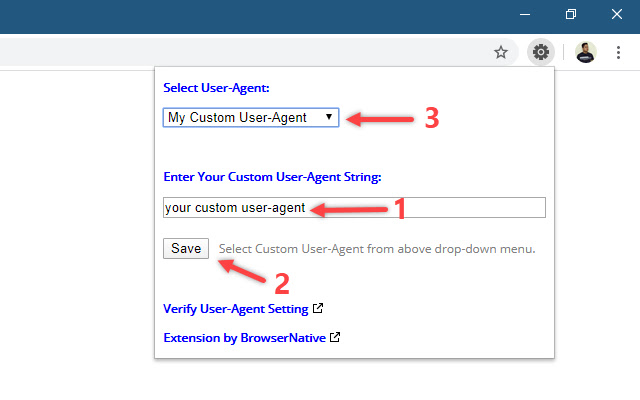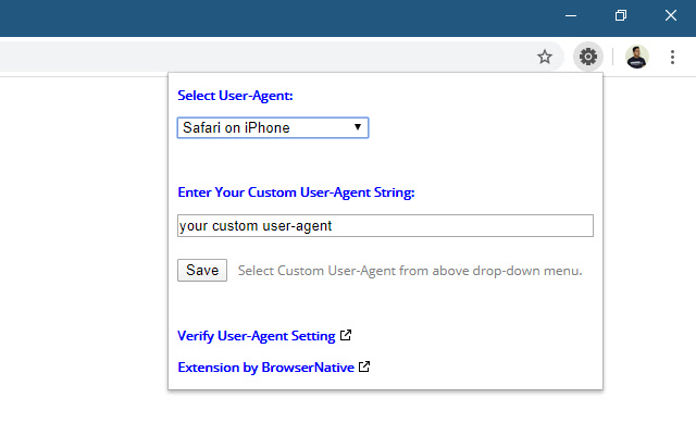 从 pset 用户代理字符串中选择,或添加您自己的自定义用户代理字符串。
