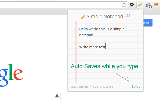 一个简单的轻量级记事本扩展,可轻松存储笔记。当您想临时保存电话号码、链接、提醒时通常很有用。