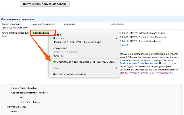 跟踪来自中国、俄罗斯、乌克兰商店的私人包裹和邮政物品……按编号
