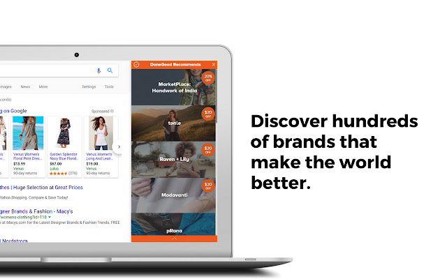 在线购物时,立即发现并节省道德、可持续的品牌。