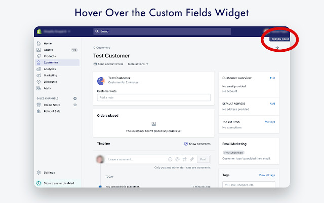 要使用此扩展程序,您必须在 Shopify 商店中安装“自定义字段”应用程序:https://apps.shopify.com/custom-fields-2