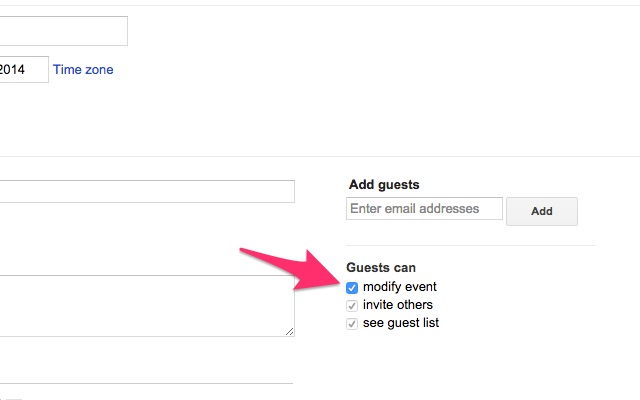 创建新活动时,默认情况下为 Google 日历启用“访客可以修改活动”设置。