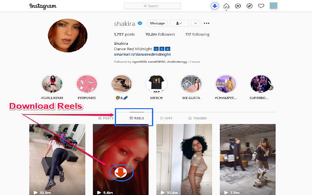 在 Instagram 上访问某人的个人资料时,您可以通过单击蓝色菜单上的“下载”按钮从您的个人资料或其他人下载所有内容