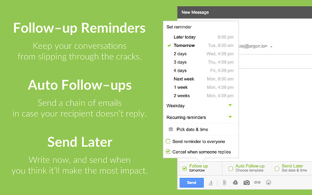 扩展您的收件箱:跟进提醒、电子邮件跟踪、自动跟进、联系人查找、稍后发送、电子邮件暂停。
