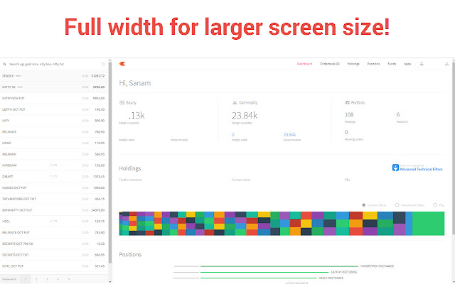 这个应用程序会给 zerodha 风筝交易平台一个全宽的外观,还有一些小细节。