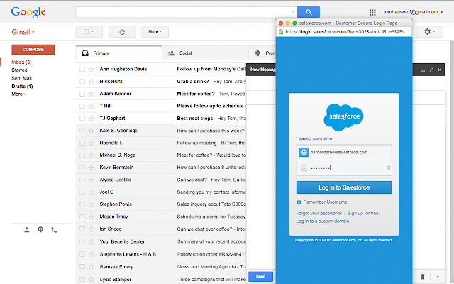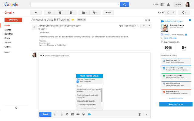 此插件允许拥有 Salesforce Engage 许可证的用户将 Pardot 直接连接到他们的 Gmail,以便他们可以轻松地在 Pardot 中跟踪通过 Gmail 发送的电子邮件,并将 Pardot 电子邮件模板拉入他们现有的 Gmail 帐户。该插件同时支持经典 Gmail 用户界面和新的 Gmail 用户界面。