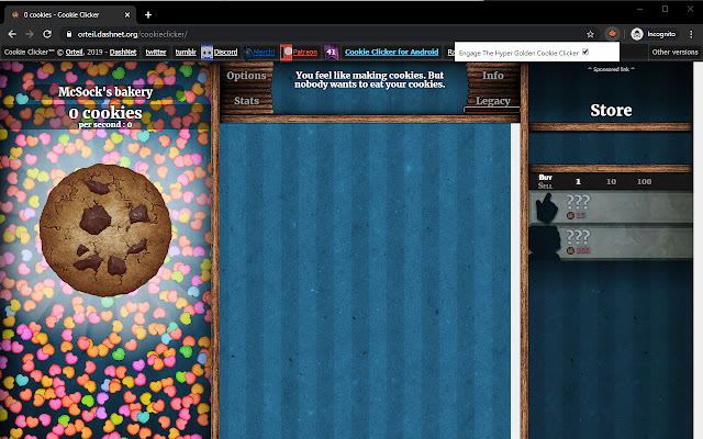 一个愚蠢的小 Cookie Clicker (https://orteil.dashnet.org/cookieclicker/) 扩展我启用了一些 mods。