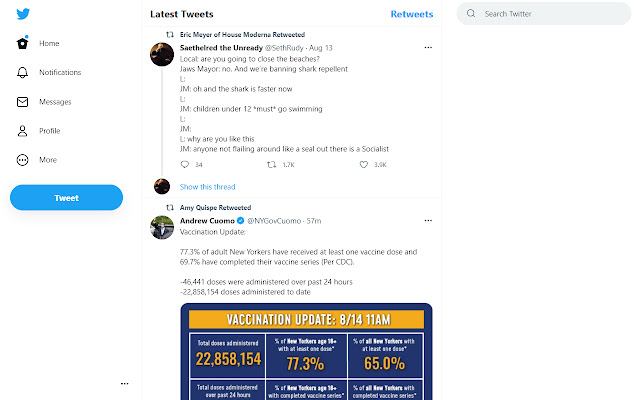 – 让您保持在最新推文(按时间顺序排列)时间轴上,如果 Twitter 试图将您移至“主页”(算法)时间轴,则会自动将您切换回来