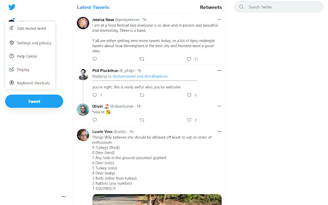– 将转推移动到单独的时间线(默认设置),或完全隐藏它们