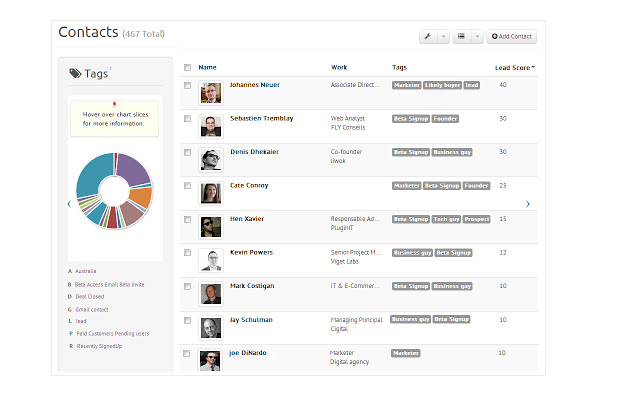 停止手动输入潜在客户并开始自动将其拉入敏捷。立即将来自网页、Gmail 和社交媒体(如 LinkedIn 和 Facebook)的潜在客户添加到 CRM。