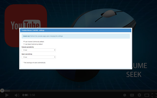 使用 YouTube™ 鼠标控制,您可以使用鼠标更改音量和搜索。