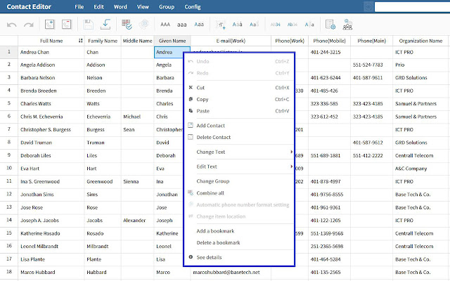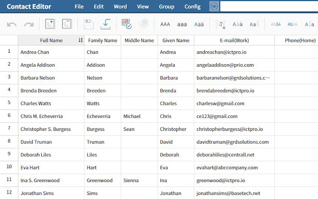 联系人编辑器使您可以通过单击以电子表格格式编辑您的联系信息!