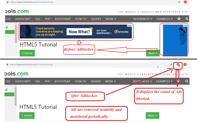广告拦截器将定期监控网站并删除动态加载的广告。