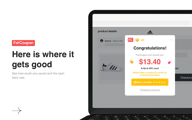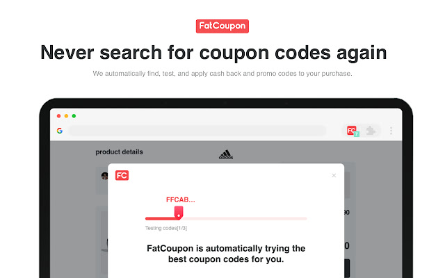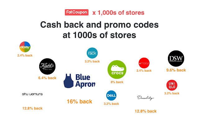使用 FatCoupon 扩展在 4000 多家商店购买现金返还和自动优惠券。