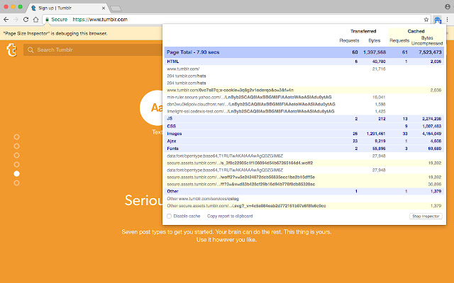 快速查看总页面大小和请求大小。