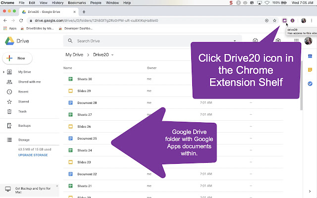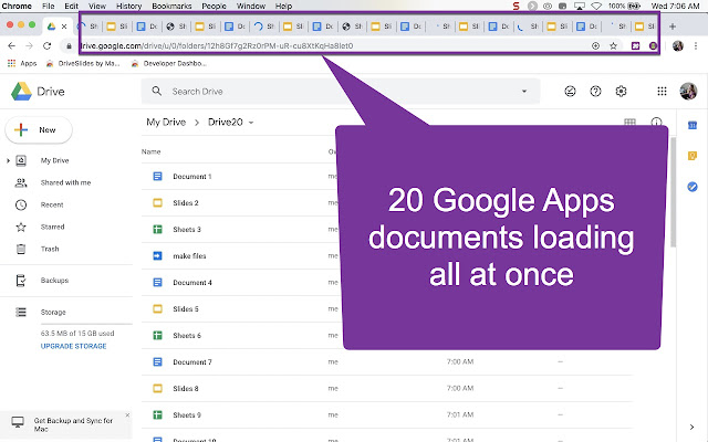 当您在 Google Drive 中的文件夹中打开该文件夹中的前 20 个文件时,此 Chrome 扩展程序会起作用。对于教师来说,这允许审查学生的作业并快速提供反馈。在 Google Drive 中单击多功能框中的 Drive20 图标以打开文件。右键单击扩展图标将默认值从 20 个文件更改为指定数量。您可以通过右键单击 Chrome 选项卡并选择“关闭右侧的选项卡”来快速关闭文件。