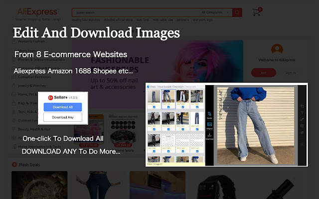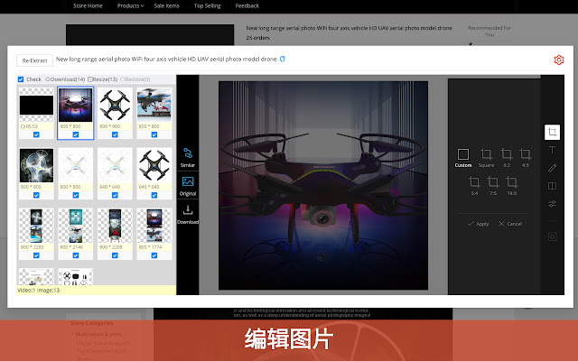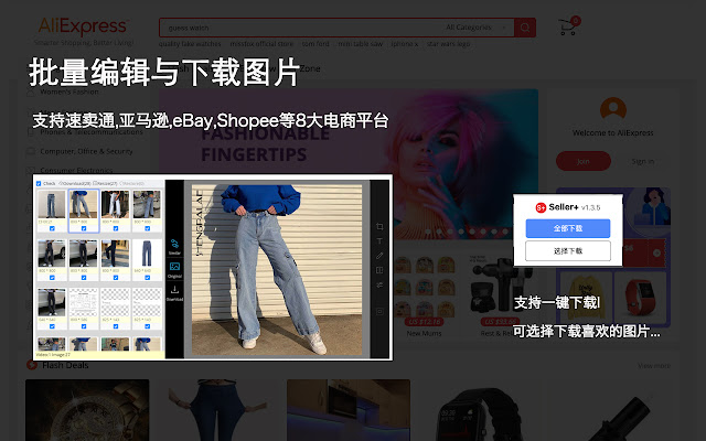 从速卖通、亚马逊、eBay、1688、虾皮,等8个电商平台下载图片甚至视频,并可对图片进行批量修改、打包下载
