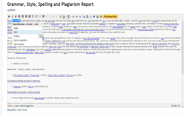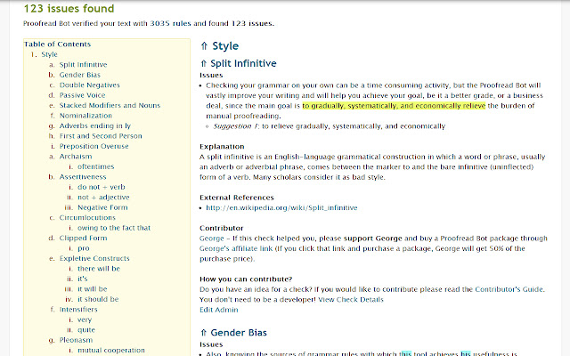 4. 将打开一个新选项卡,该选项卡会转到 proofreadbot.com,您选择的文本将被输入以进行检查。