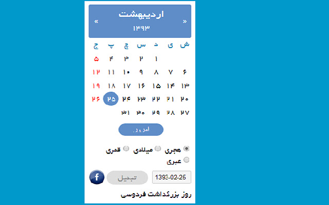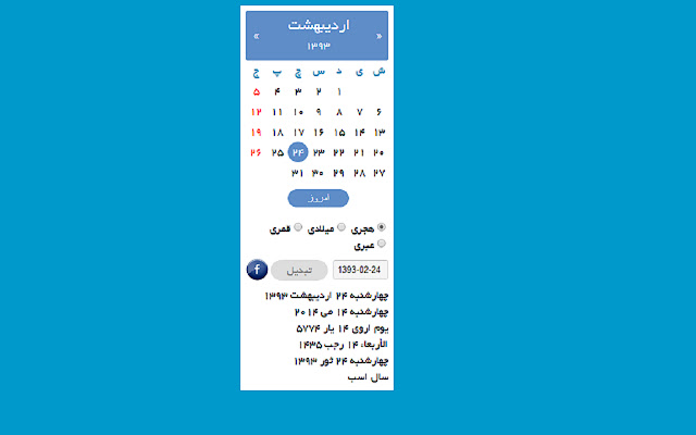 在 Chrome 中使用的波斯 Jalali 日历。此日历以月格式显示波斯历的当前日期。