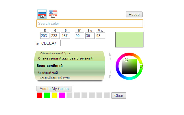 此扩展程序可轻松按名称搜索任何颜色阴影。此外,您可以输入 rgb、hsv 和 hex 格式的颜色数据