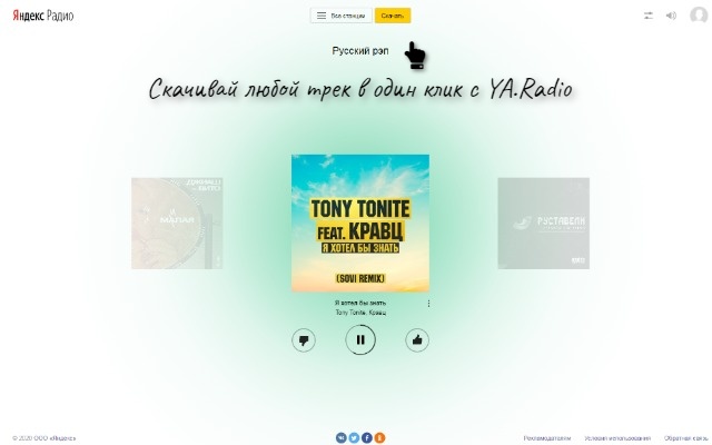 该扩展程序还允许您从 Yandex Radio 下载。安装扩展程序后,转到 radio.yandex.ru,您将在顶部的播放器页面上看到一个黄色按钮,用于下载曲目。默认情况下,文件保存在 yandex.radio 文件夹中。