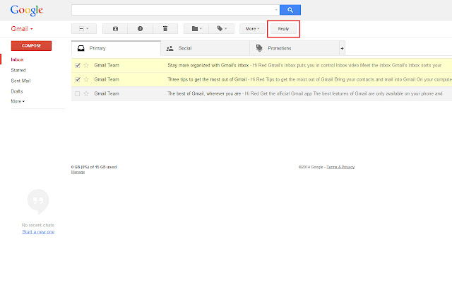 只需转到 https://mail.google.com/,选择您要回复的对话,然后单击屏幕顶部的“回复”按钮即可!
