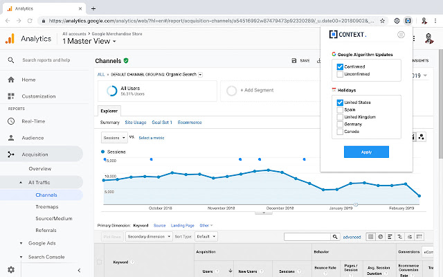 在您的 Google Analytics 报告中查看 Google 算法更新和全球假期。