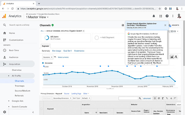 5- 单击您在 Google Analytics 图表上看到的任何上下文小图标以查看注释详细信息。