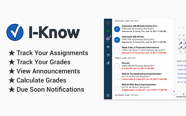 I-Know 不会检查学校的网站上的作业,而是会为您检查,并创建一份即将完成的作业清单。