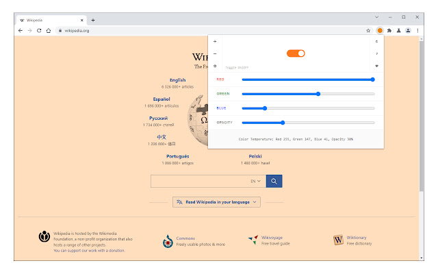 色温(更改勒克斯)扩展通过向网站添加暖色(即在夜间或环境较暗时)来保护您的眼睛。使用此插件,您可以避免过多的蓝光,还可以保护您免受计算机屏幕蓝光的影响,从而让您睡得更好。