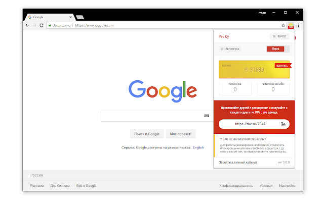 该扩展程序通过浏览网站赚钱。从 1 RUB 提款到 Payeer, Qiwi。