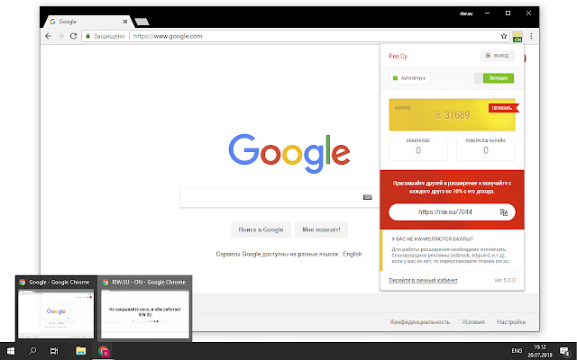 该扩展程序在单独的窗口中查看各种网站,您将获得奖励。首先,您需要通过任何方便的社交网站登录。网。