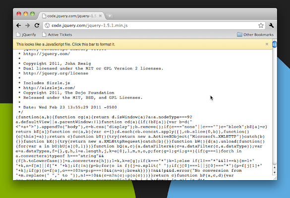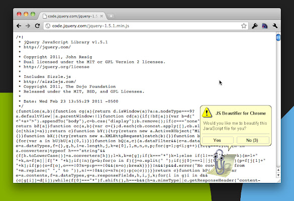 这个扩展建立在 Einar Lielmanis 的 JSBeautifier 项目之上。如果您在浏览器中查看 JavaScript 文件,您将可以选择对其进行格式化。您可以在扩展的选项页面中设置特定的格式设置。
