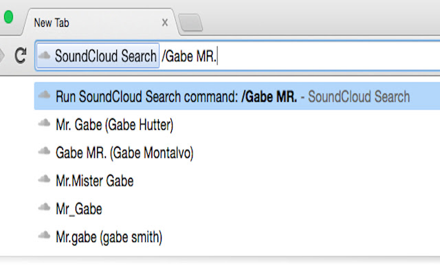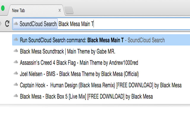 SoundCloud Search 是一个 Chrome 扩展,用于通过多功能框搜索 SoundCloud 曲目和用户。使用关键字 sc [tab/space] 您可以立即开始搜索曲目。输入以正斜杠 [ / ] 开头的用户名以搜索该用户。建议数量有限,按 ENTER 会将您重定向到 SoundCloud 的搜索结果页面。
