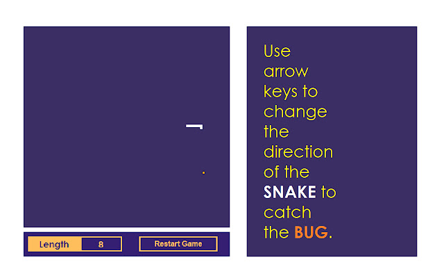在弹出屏幕中玩蛇游戏。使用箭头键改变蛇的方向并捕捉虫子。