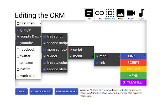 使用 CRM API、它附带的 chrome API 和后台脚本,您可以像编写 chrome 扩展程序一样自由地编写 JavaScript 脚本,只是这要容易得多。这使您可以编写任何您想要的内容,并通过共享将其合并到您或其他人的右键单击菜单中。