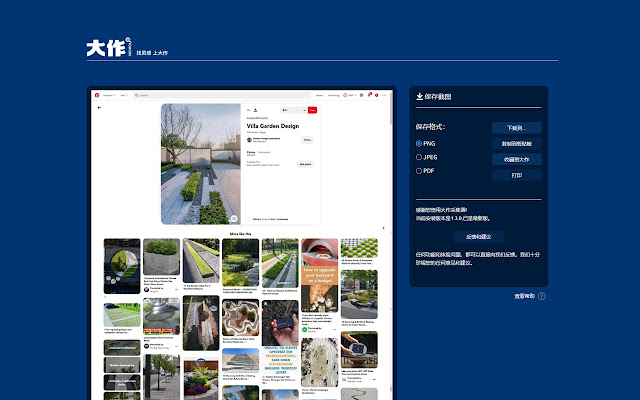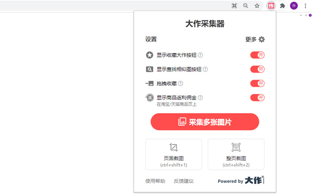 该扩展程序是由大作官网(www.bigbigwork.com)提供,这是一个可以使您方便地收藏各个网站的图片,到您的大作账号(www.bigbigwork.com)中,在以后需要的时候,可随时打开大作浏览您收藏的图片。在收藏的时候可以由大作AI智能程序识别图片的场景和物体,供您选择,方便以后查找。
