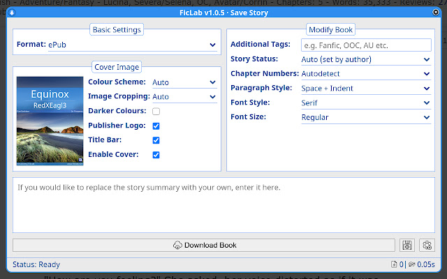 支持 ePub、Kindle、PDF、markdown、纯文本、MS Word (docx) 和 HTML。您还可以将封面图片单独下载为 PNG 文件。