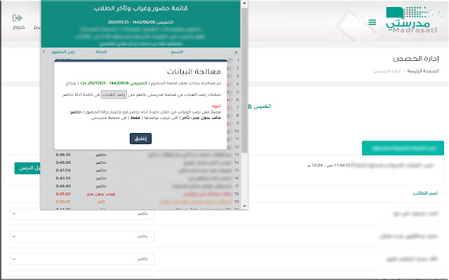 教师在 Madrasati 平台上监控男女学生缺勤和迟到的辅助工具