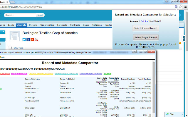 Record and Metadata Comparator for Salesforce