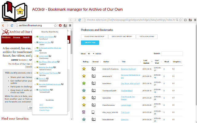 用于阅读我们自己的档案 (archiveofourown.org) 的非官方书签管理器
