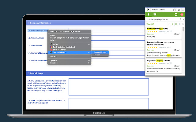 RFPIO® LookUp for Chrome 提供了一个访问点,使其可供整个组织中面向客户的团队和内容创建者使用,包括销售、营销、支持等。