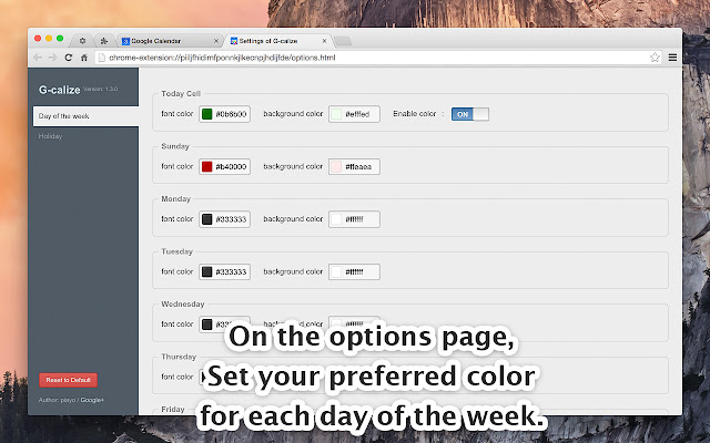 * 浏览器保存假日数据的机制 * 颜色优先为“今天>假日>星期几”