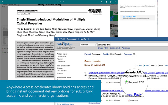 • 对于订阅了 Anywhere Access 文档传递服务的组织的 ReadCube Papers Enterprise 用户,您将获得额外的即时购买选项按钮,以促进对数千种期刊的全文访问。