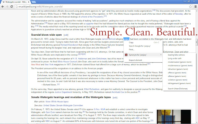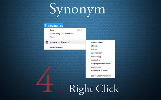 要获取单词的同义词,您只需突出显示它并单击鼠标右键即可。它是如此简单。没有广告,没有额外的按钮,也没有选项菜单。