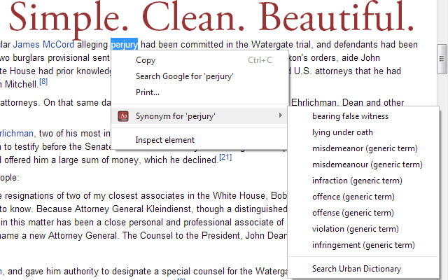 这个很棒的同义词扩展将同义词添加到右键单击菜单中,就像您在 Microsoft Office(TM) 中习惯的那样。它还为您提供了在 Urban Dictionary (TM) 中查找突出显示的单词的选项。