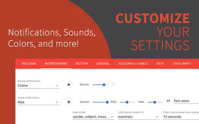 • 当收到新邮件时,获得桌面音效或语音通知。(您甚至可以录制自己的语音通知)