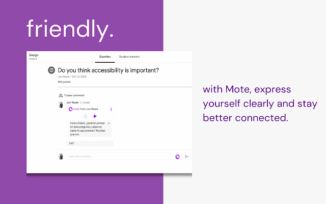 欢迎使用 Mote,您可以在其中轻松地将语音评论和音频内容添加到共享文档、作业、电子邮件和表单中。