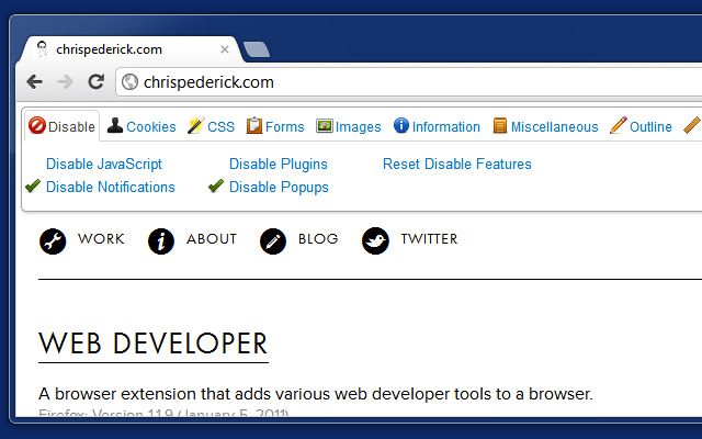 Web Developer 扩展向浏览器添加了一个带有各种 Web 开发工具的工具栏按钮。这是 Firefox 的 Web Developer 扩展的官方端口。