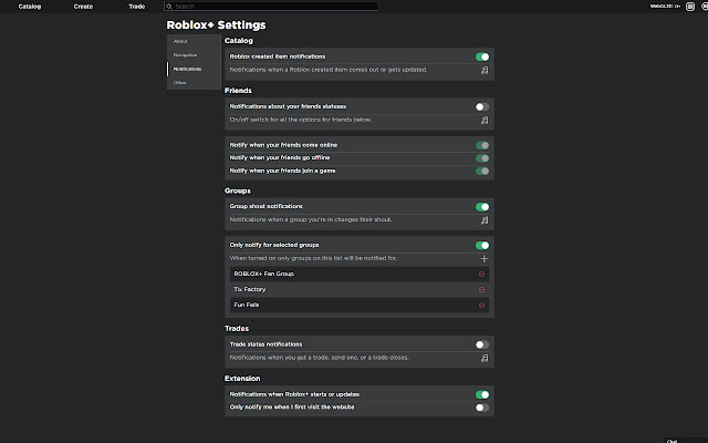 * 在不受支持的 Roblox 页面上支持深色主题